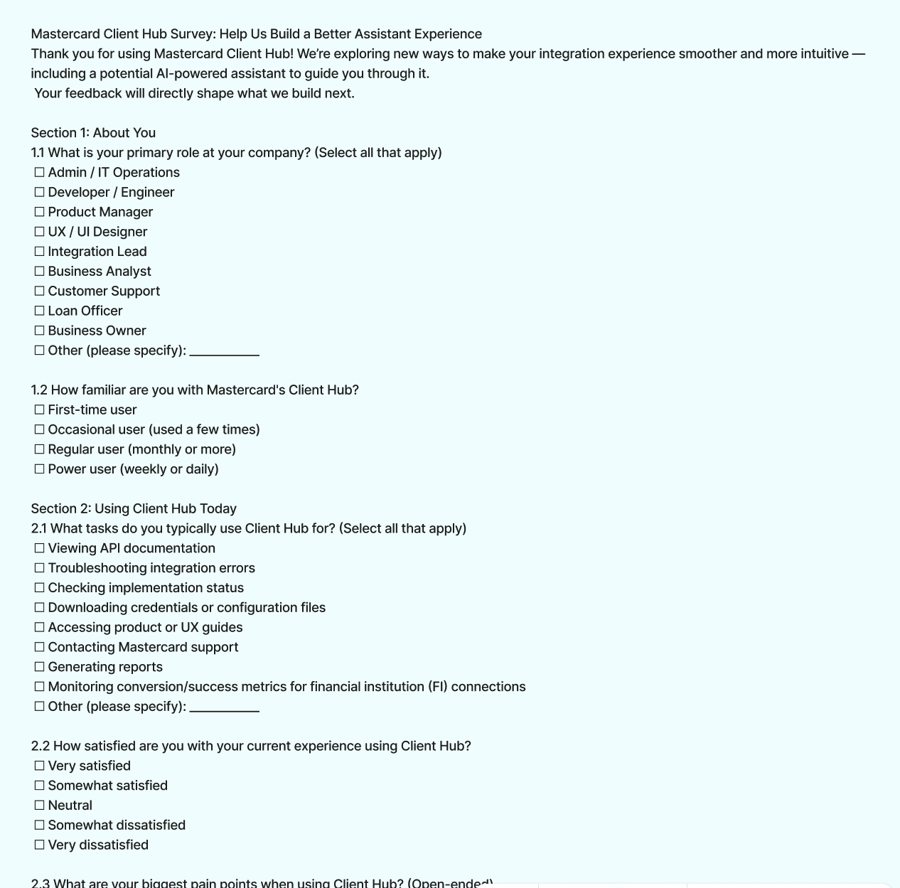 Clients wanted to customize their Open Banking Connect experience, but doing so required engineering support, long turnaround times, and back-and-forth with internal teams. This created friction, slowed client onboarding, and limited clients’ ability to iterate or test changes on their own. We needed a way to give clients control over customization while keeping the experience simple, fast, and fully embedded within Client Hub.